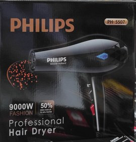 فیلیپس برند نام آشنا در تولید محصولات با کیفیت برقی است. یکی از این محصولات با کیفیت سشوار حرفه ای 9000 وات فیلیپس مدل PH-5507 است. این محصول با بهره گیری از موتور AC دارای قدرت پرتاب باد بسیار بالایی است و در دسته سشوار های حرفه ای قرار میگیرد. روی دسته این محصول 3 دکمه تعبیه شده که آنها تنظیم حرارت سشوار و سرعت دمیدن باد را به عهده دارند به این صورت که یک دکمه جهت ایجاد باد سرد به طور لحظه ای است. یک دکمه 3 حالت بدون حرارت، حرارت کم و حرارت زیاد را انجام میدهد. یک دکمه هم تنظیم 3 حالت باد خاموش، سرعت کم و سرعت زیاد را به عهده دارد. درون بسته بندی 1 عدد سری متمرکز کننده وجود دارد.