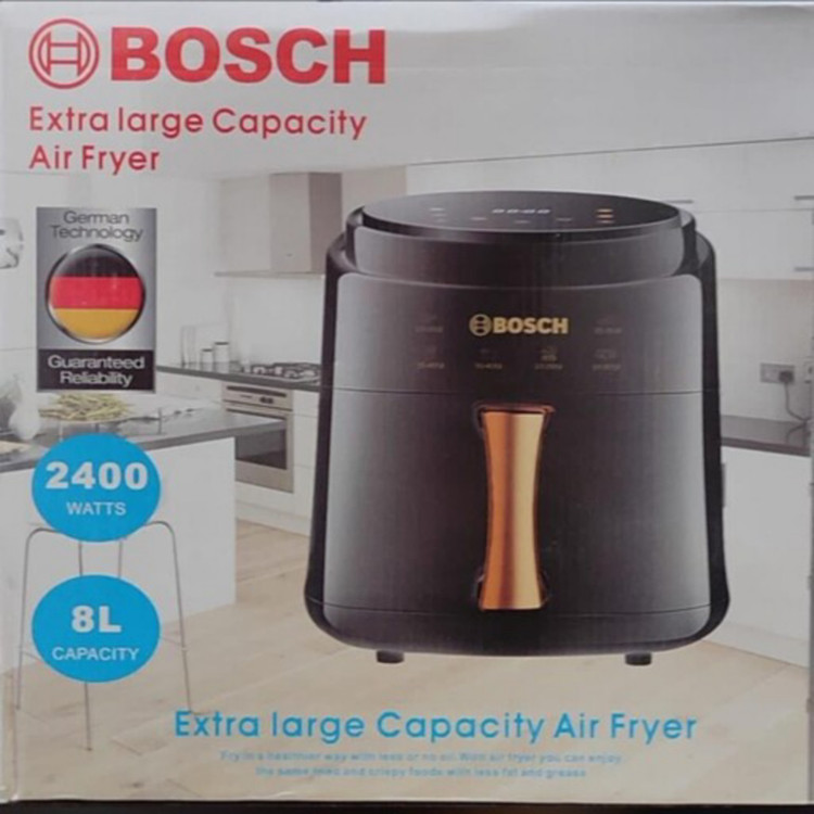 سرخ کن محصولی کاربردی و البته ضروری برای تمام افرادی است که علاقه به غذاهای سرخ کردنی داشته اما روغن برای آنها مضر است. سرخ کن بدون روغن بوش لمسی ظرفیت 8 لیتری دارد و مناسب برای خانواده های متوسط و کم جمعیت است. این سرخ کن دارای توان 2400 وات بوده که در زمان کوتاهی هر نوع مواد خوراکی از مرغ گرفته تا سیب زمینی را برای غذاهای شما سرخ میکند. این سرخ کن بوش دارای نمایشگری دیجیتالی است که با یک لمس میتوانید هر برنامه و تنظیماتی را اعمال نمایید. این سرخ کن 2022 مجهز به خاموش شدن خودکار بوده که پس از اتمام تایم تنظیم شده خاموش شده و غذای شما را به بهترین شکل ممکن برایتان آماده میکند.