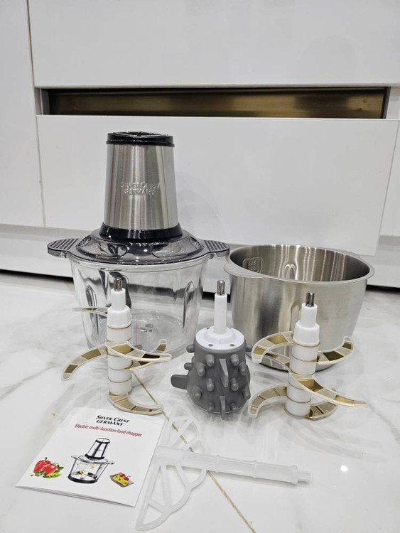 سایر مشخصات: دارای دو کاسه و دو تا ششرتیغ دارای سیر پوست کن حک برند روی موتور و سیرپاک کن لرزهگیرمحکم. کاردک همزن ستهبندی عالی
