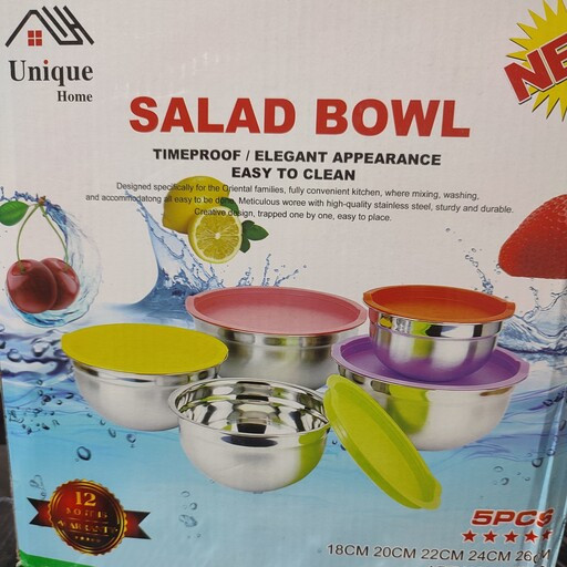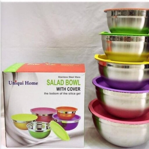 لگن استیل پنج تکه درب رنگی مدل یونیک هوم
