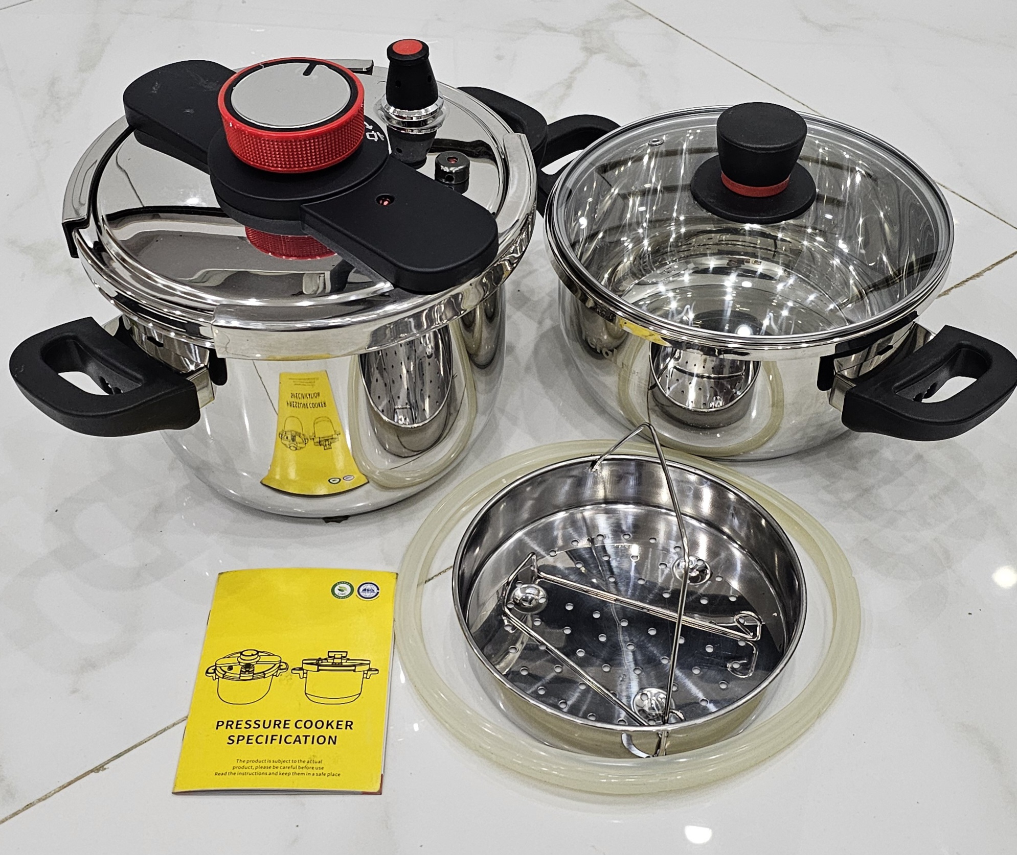 زودپز دوقلو تفال پلاس Tefal plus لیتر 5+7 مدل درب کلیپسی کیفیت عالی با واشر اضاف