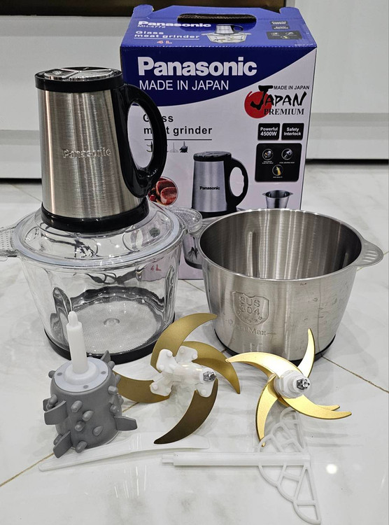 خردکن دو کاسه پاناسونیک 4 لیتر 6+4 تیغ تیتانیوم، موتور حک شده همراه با سیر پوست کن و همزن مدل 4772